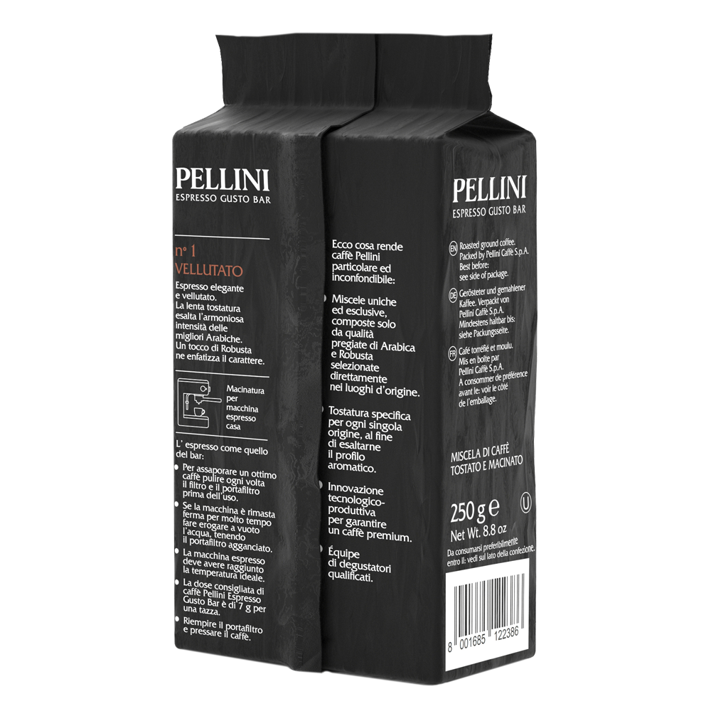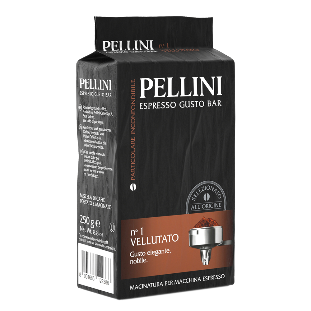 Pellini N°1 Vellutato is an exquisite ground espresso coffee that embodies elegance and velvety perfection. Immerse yourself in a harmonious intensity crafted from the very best Arabica coffees, where a hint of Robusta adds character to every cup.
